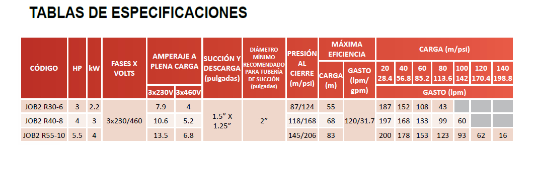 FICHA TÉCNICA BOMBA MULTIETAPAS VERTICAL JOB2 R30-6